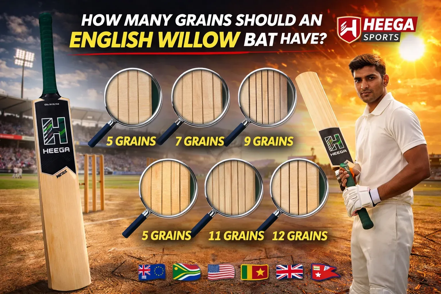 At Heega Sports, we often get this question from players across UK (Europe), Australia, South Africa, USA, Sri Lanka, and Nepal — “How many grains should an ideal English willow bat have?”